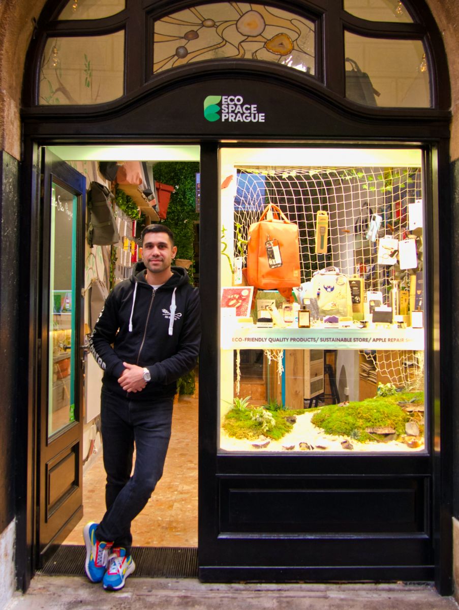I was brought to sustainability and business in this area from two sides. Today my shop is called Eco Space Prague, but I originally started as an iOS service in 2018, repairing Apple devices, especially the displays on iPhones. That was kind of the first step towards a sustainability business. With this experience, we started an iOShop where, in addition to servicing, we sold eco-friendly phone packaging and accessories, the first in the Czech Republic.
